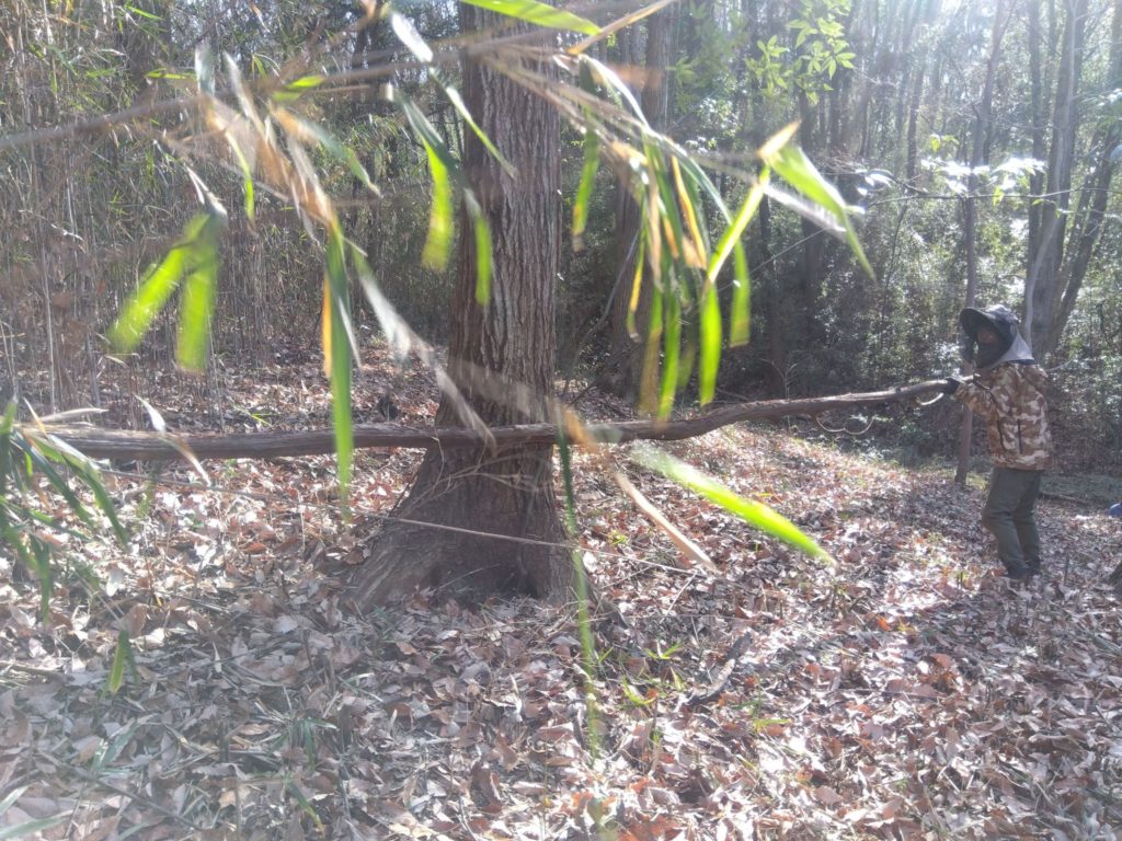 はんで棒置き場はまだ完成していないが(汗)、手入れをしている山に落ち葉がわんさかあり、それを今まで以上に活用したくなってきたので、落ち葉をためておける枠を竹で作ってみることにした。